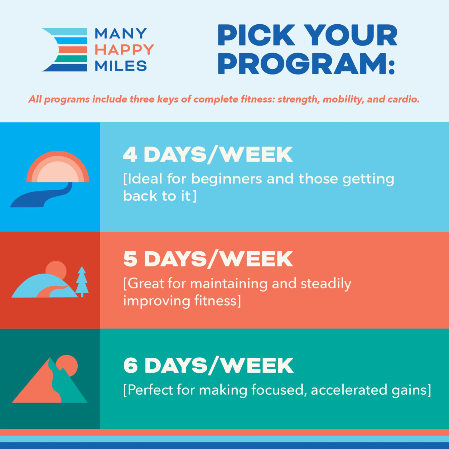 Every six weeks, you'll receive a fresh batch of workouts loaded directly into your app; you can pick from 4, 5, or 6 workouts/week.
